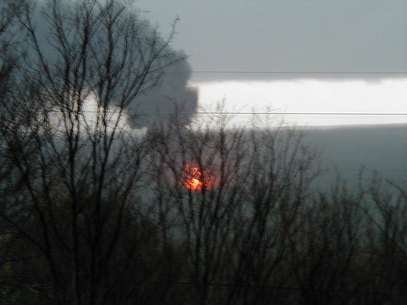 Here's where an oil tank got hit by lightning. Sorry for the